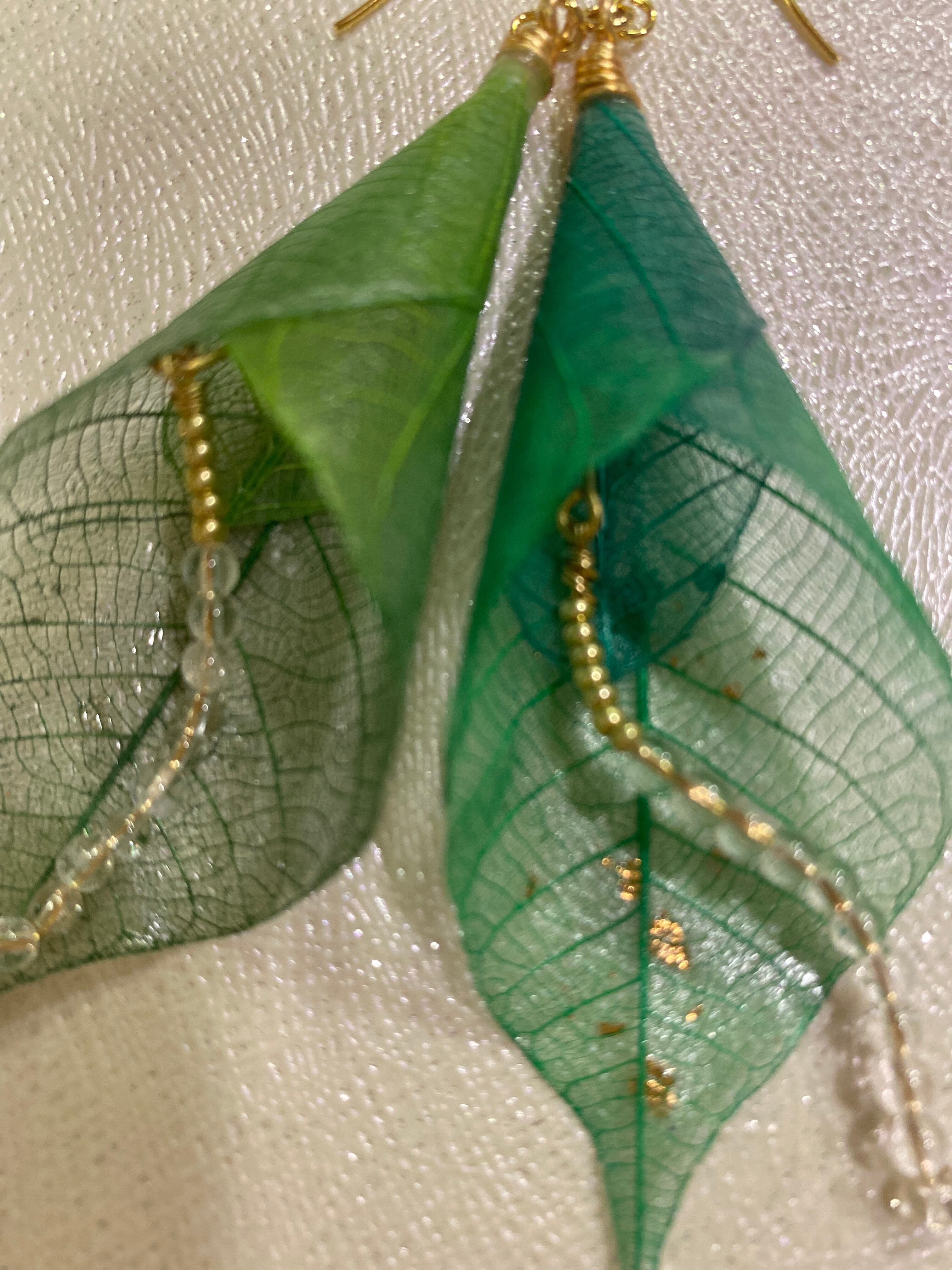 本物のゴムの葉を贅沢に使ったユニークな大ぶりなピアスです。