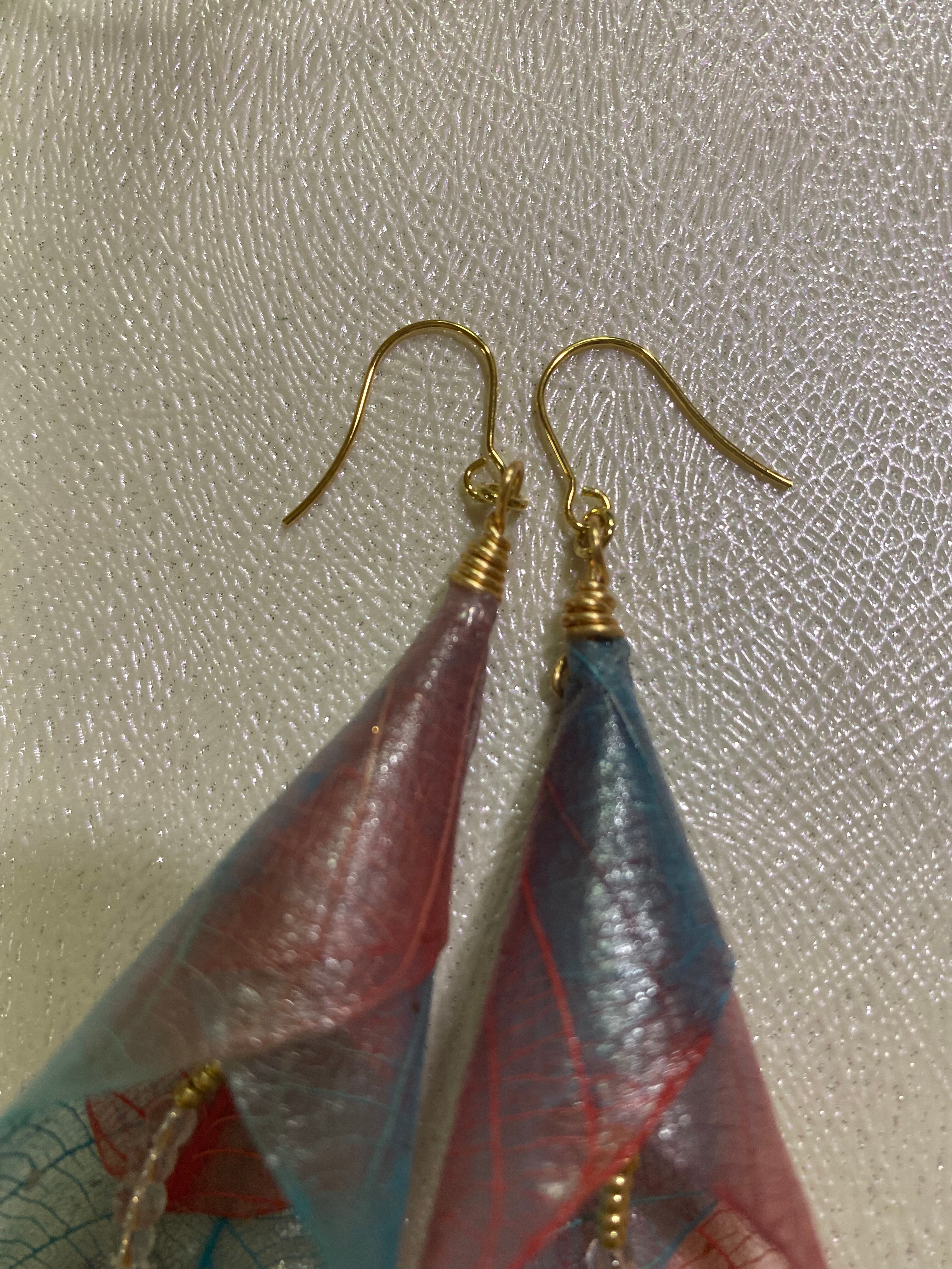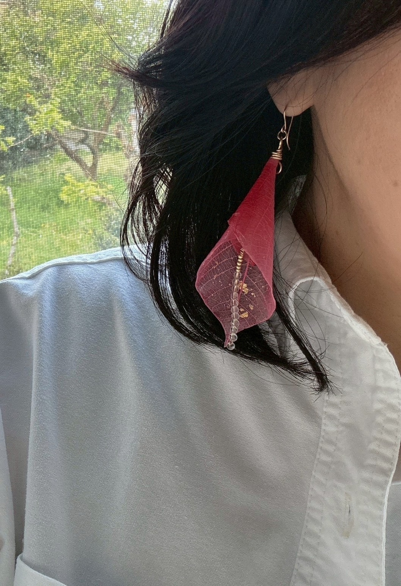 本物のゴムの葉を贅沢に使ったユニークなピアスです。