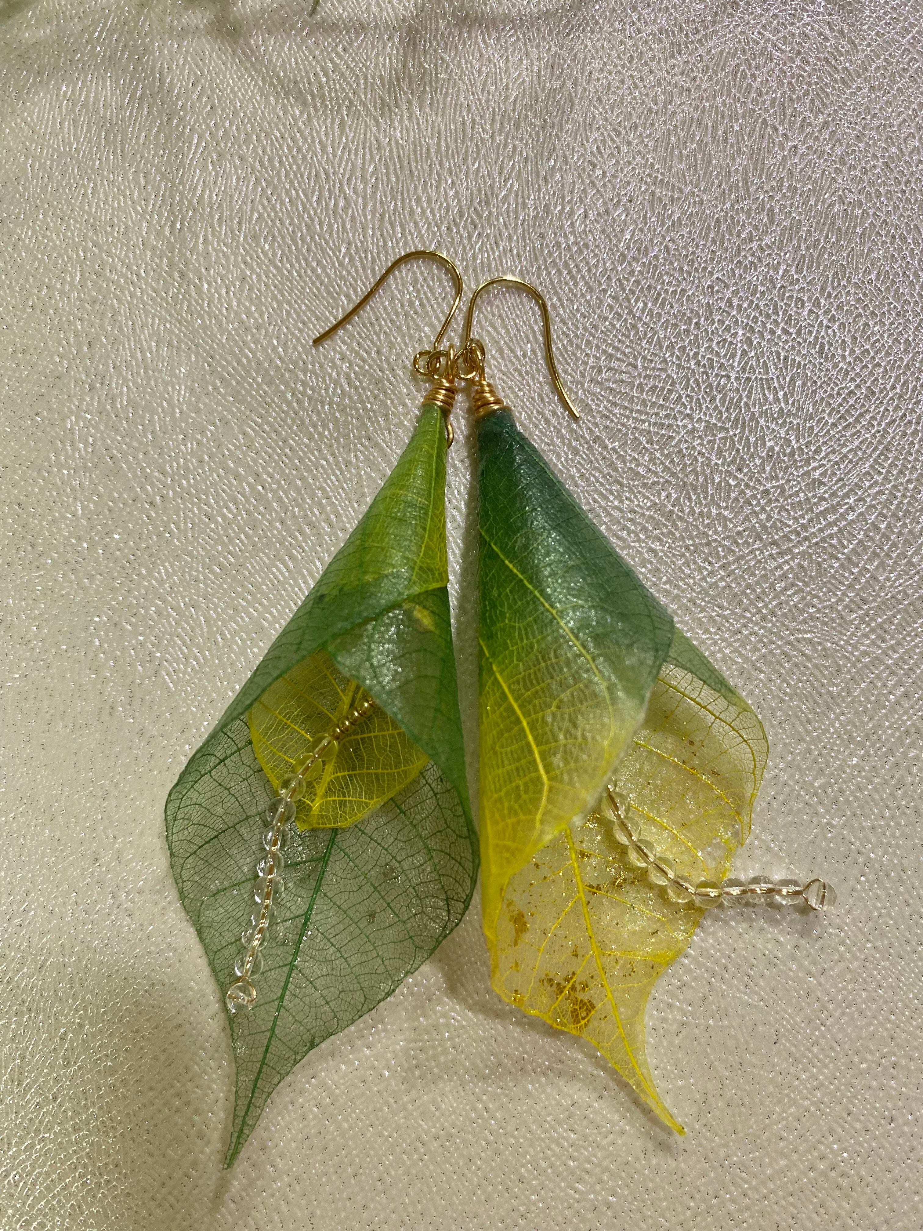 本物のゴムの葉を贅沢に使ったユニークな大ぶりなピアスです。