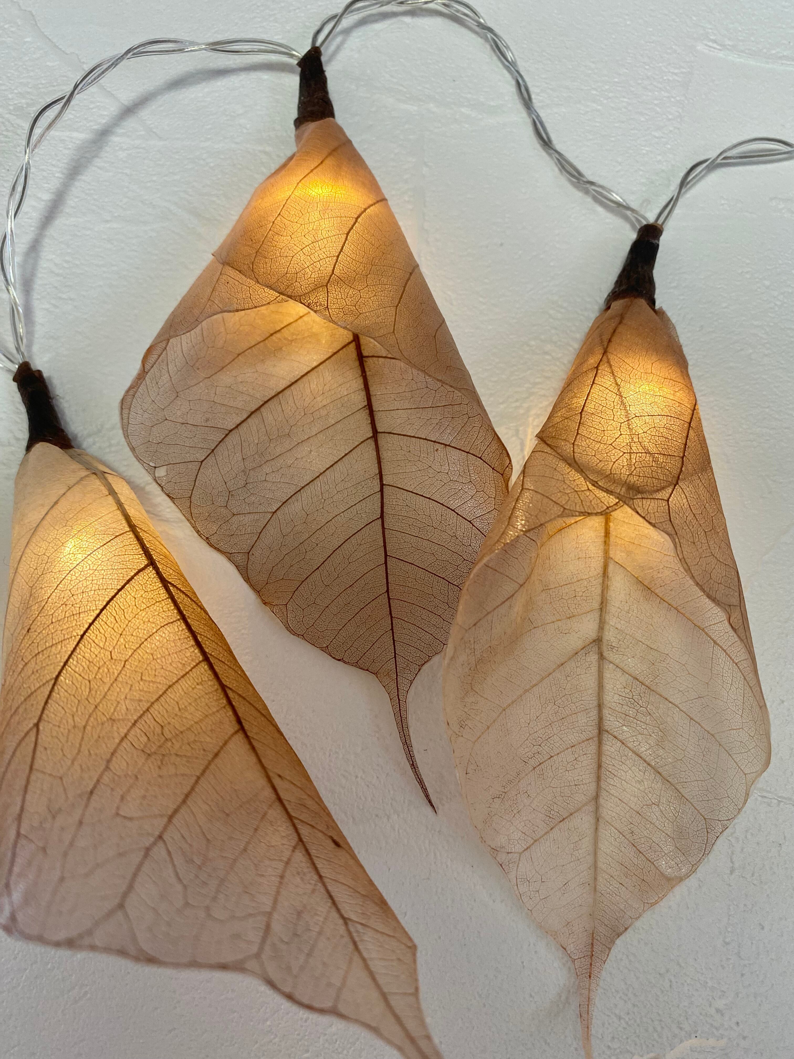 本物の植物の葉、インド菩提樹の葉っぱで作ったイルミネーションライト