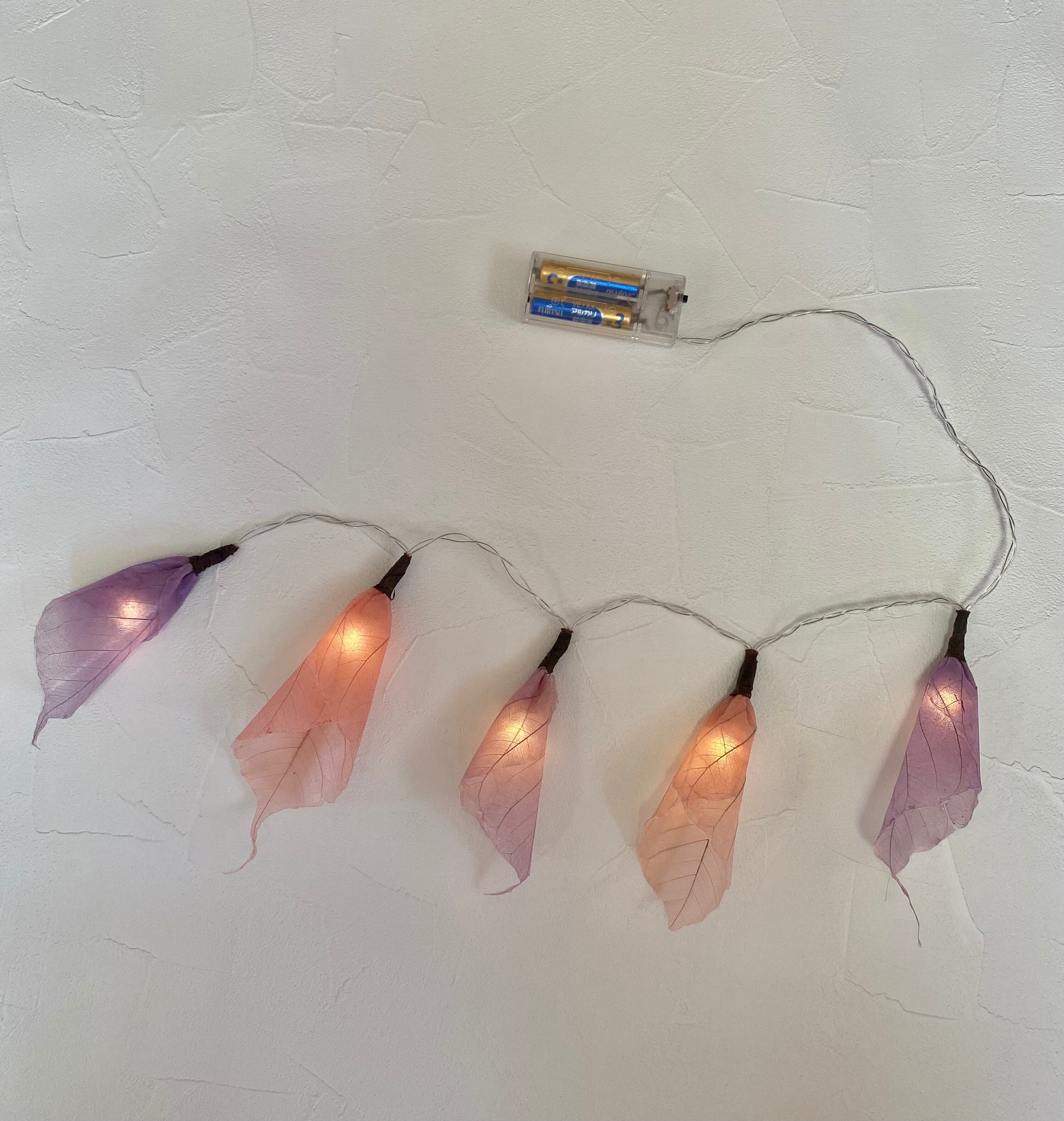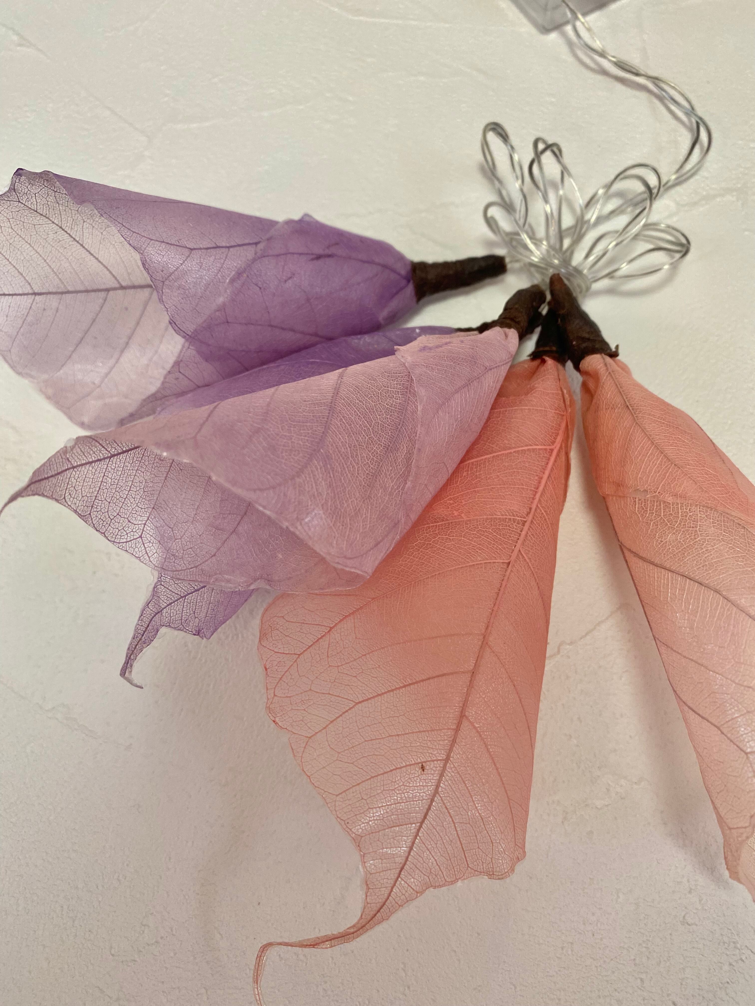 本物の植物の葉、インド菩提樹の葉っぱで作ったイルミネーションライト