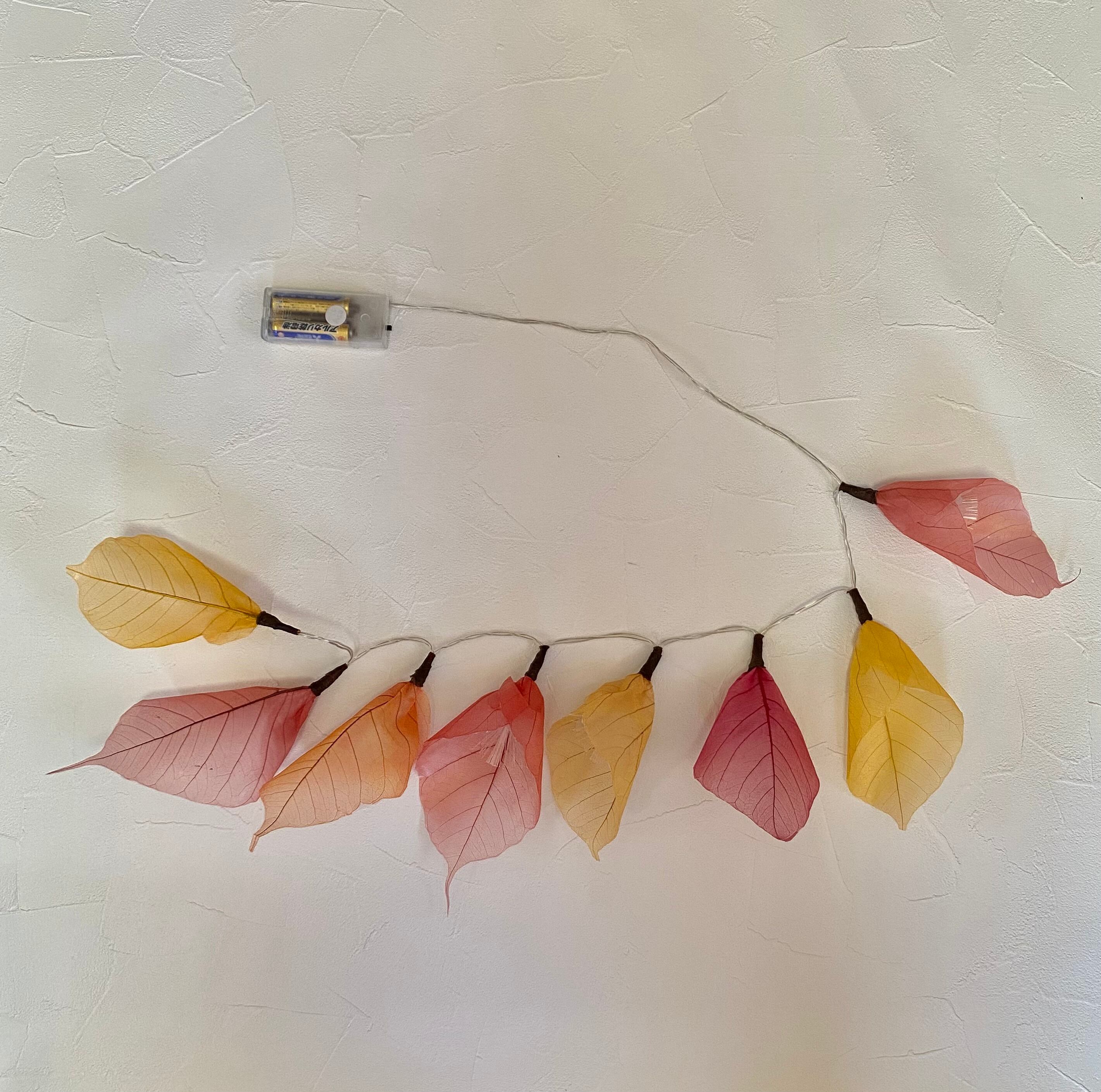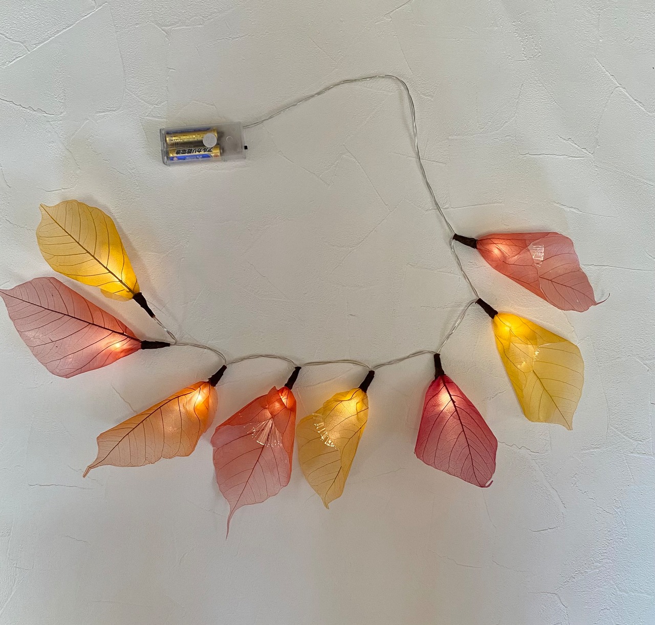 本物の植物の葉、インド菩提樹の葉っぱで作ったイルミネーションライト