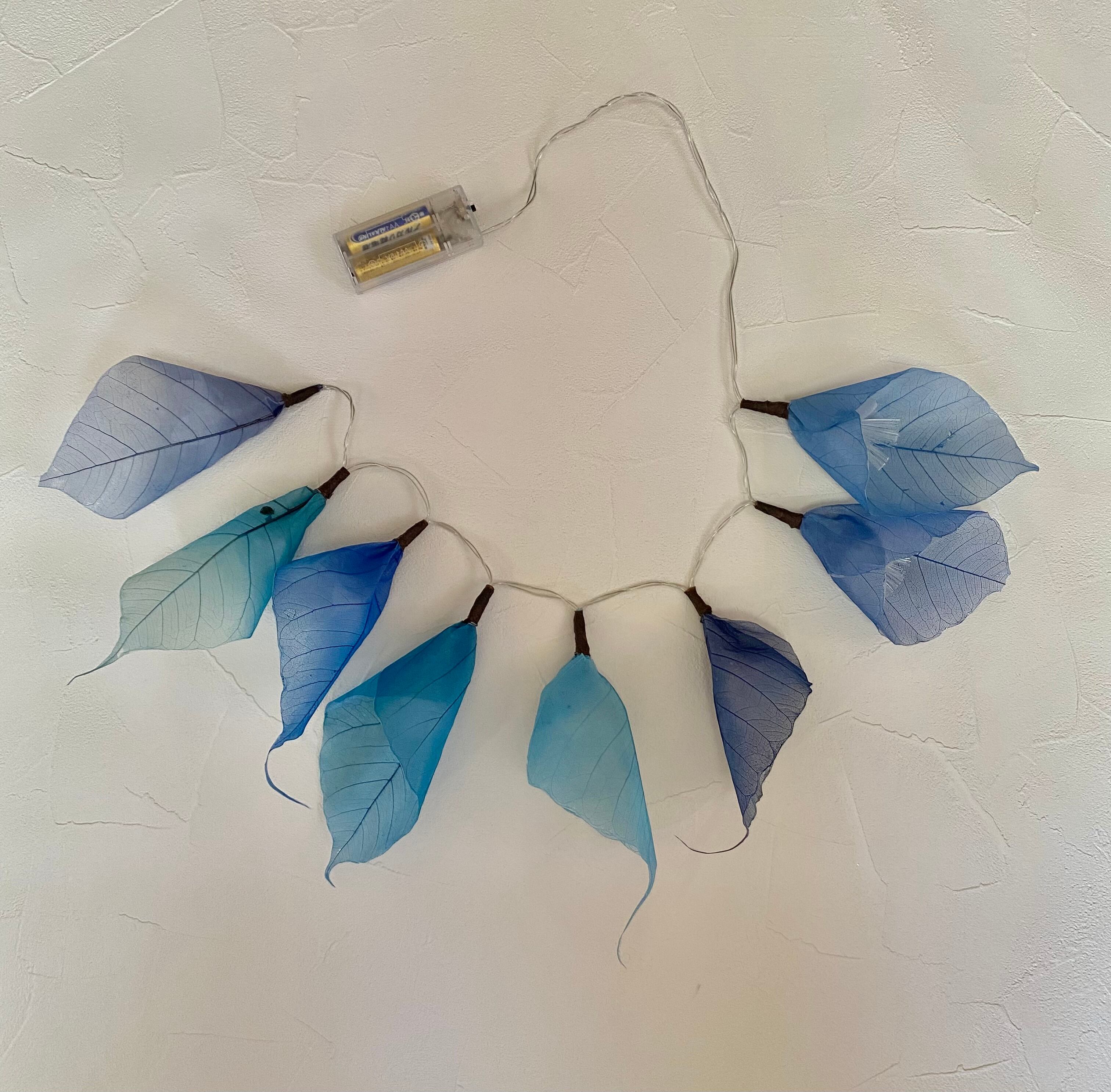 ボタニーペインティング インド菩提樹のイルミネーションライト 8灯電池式ファイバータイプ ブルー系