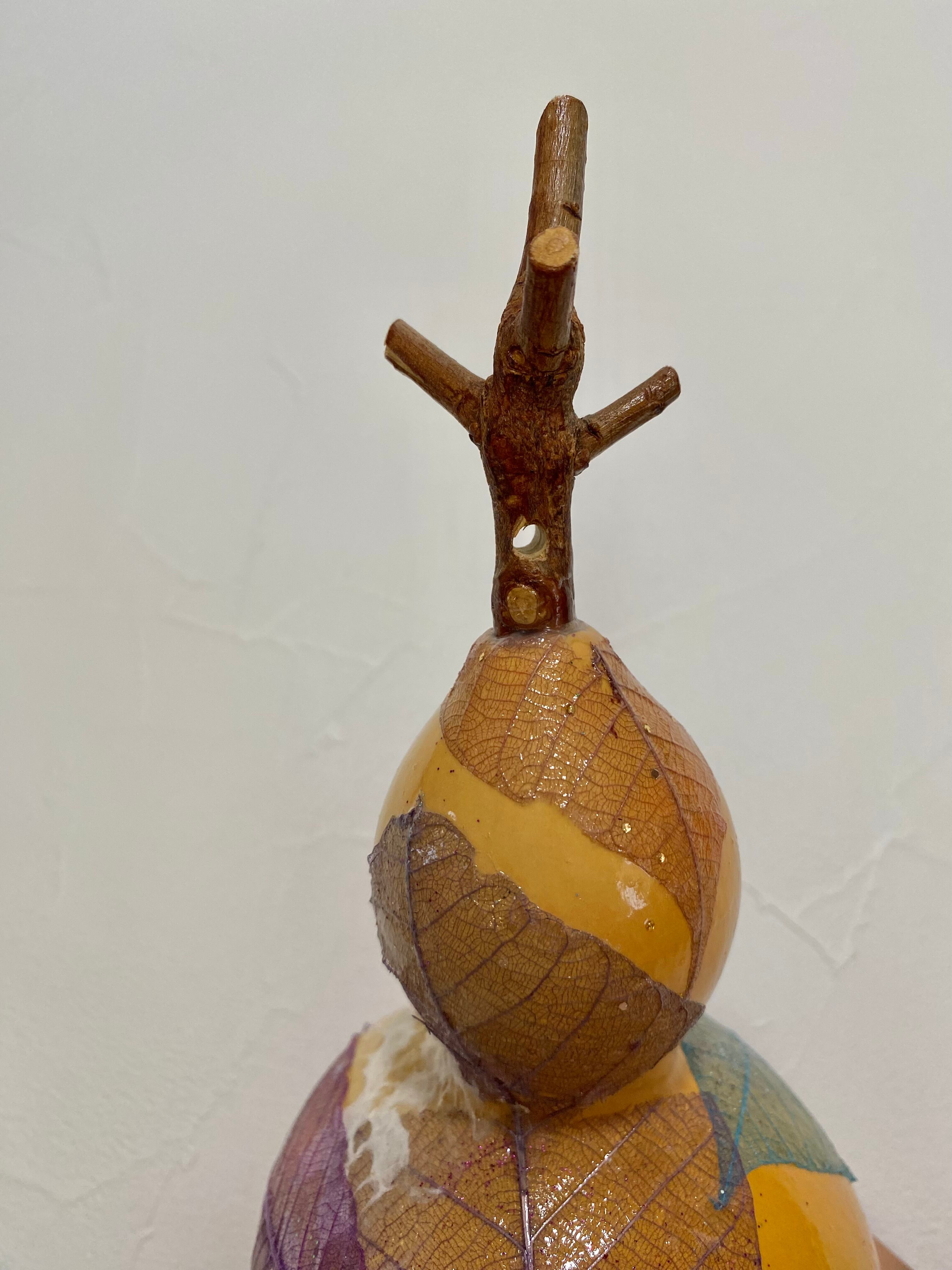 美しい手作りのひょうたんにゴムの葉と和紙