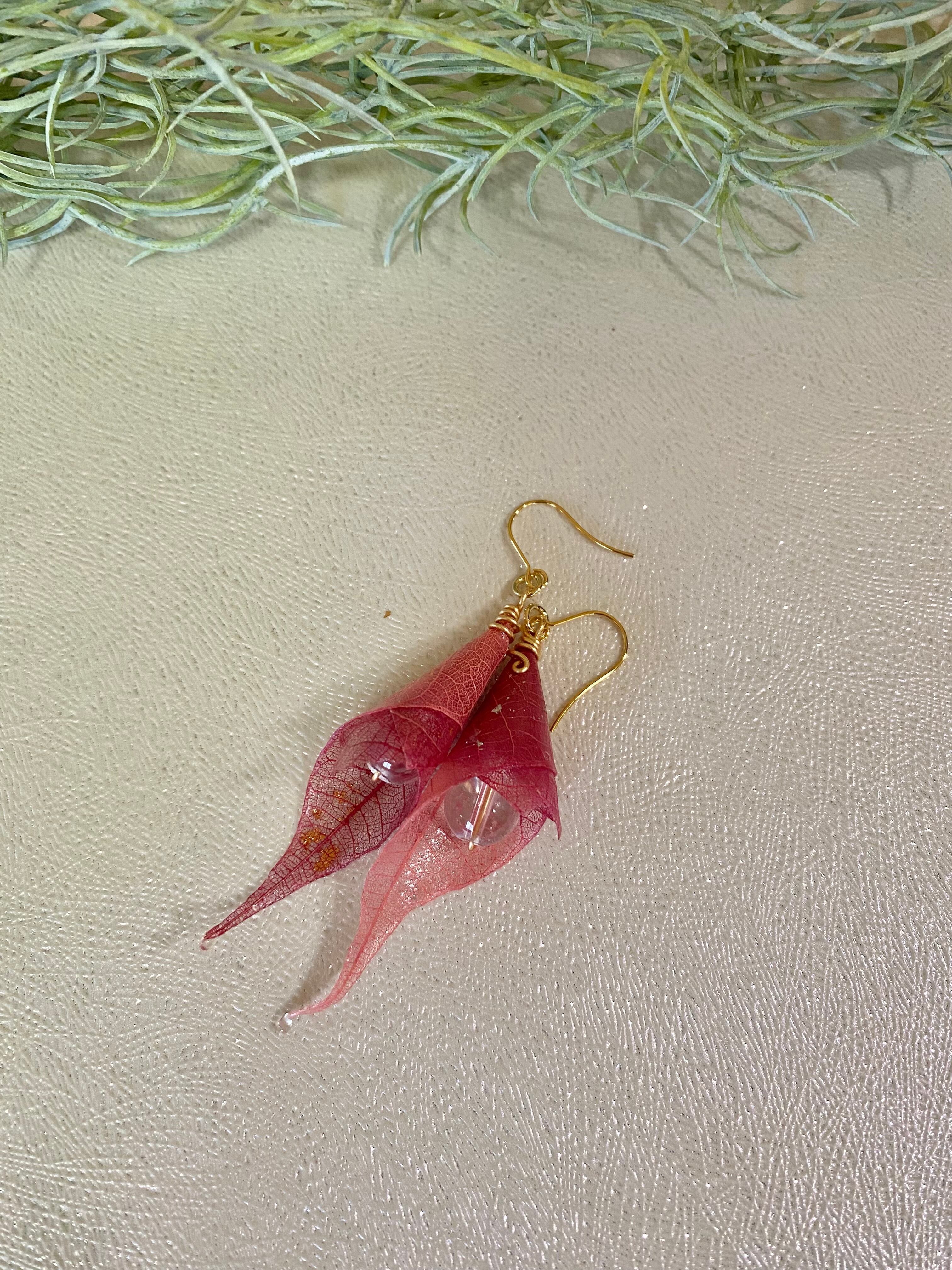 本物のゴムの葉を使用したミニタイプのピアスです。