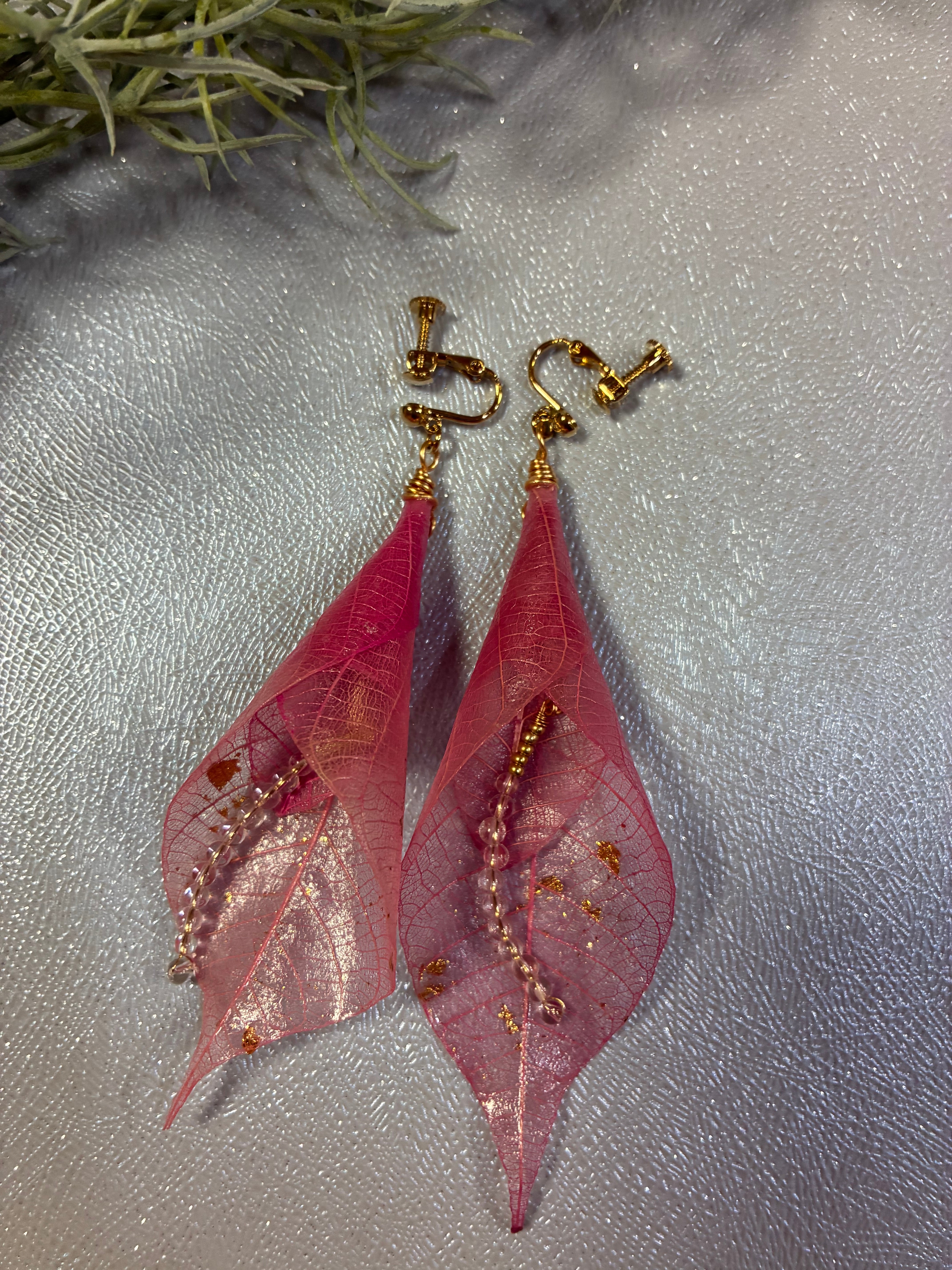 本物のゴムの葉を贅沢に使った素敵なイヤリングです。