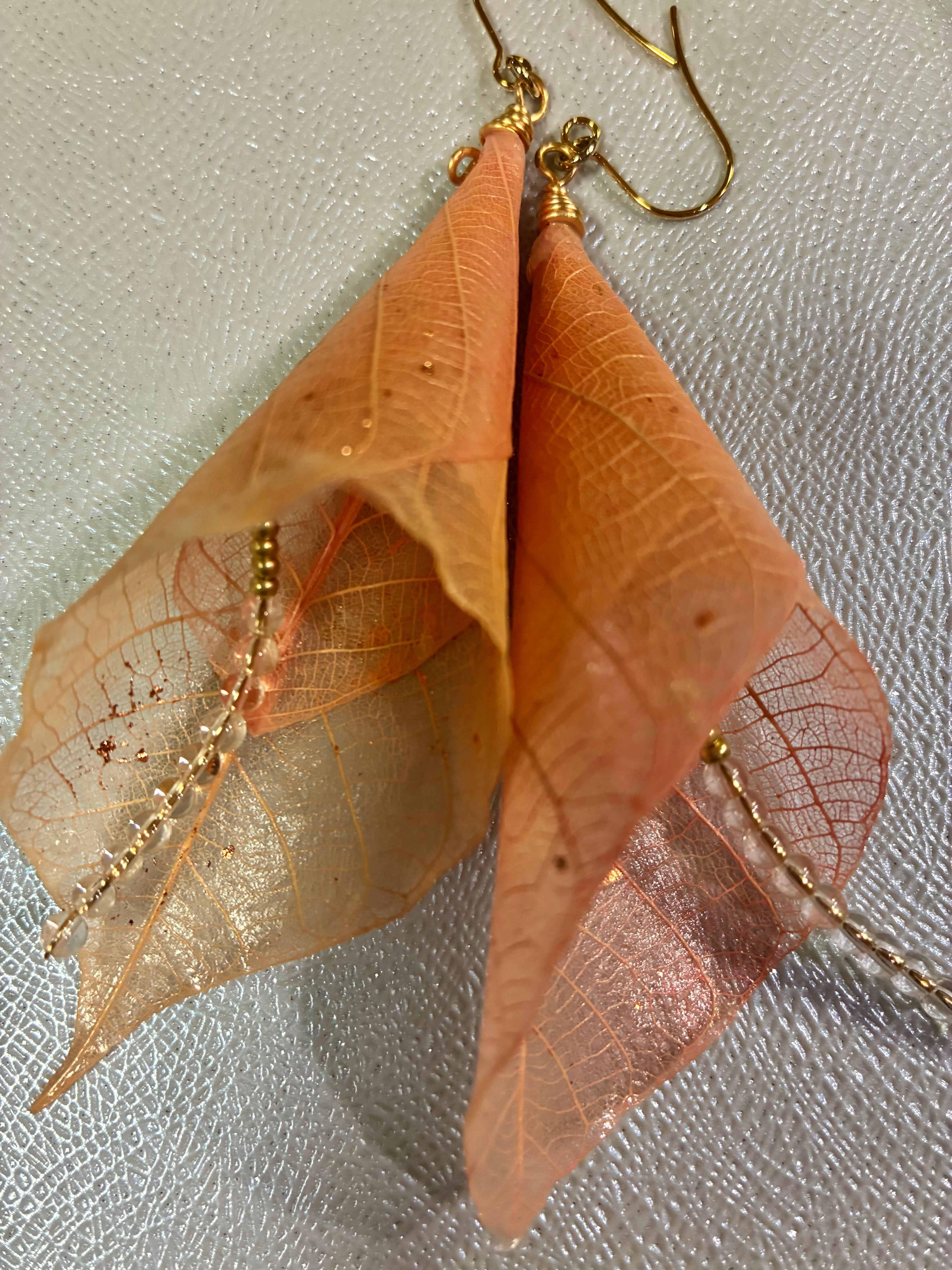 葉っぱの全長は約9cmで、ライトオレンジ系の色合いが特徴的!