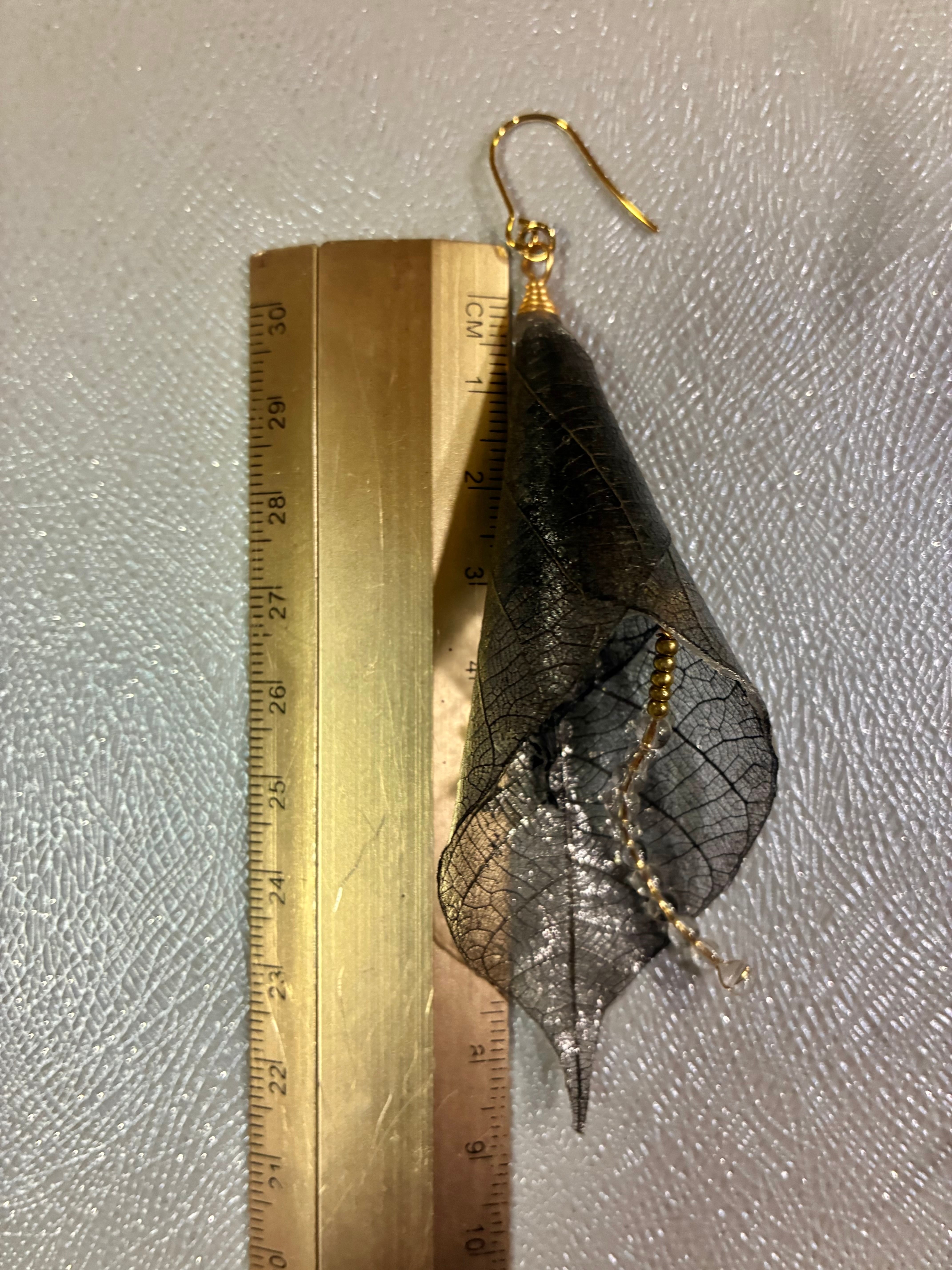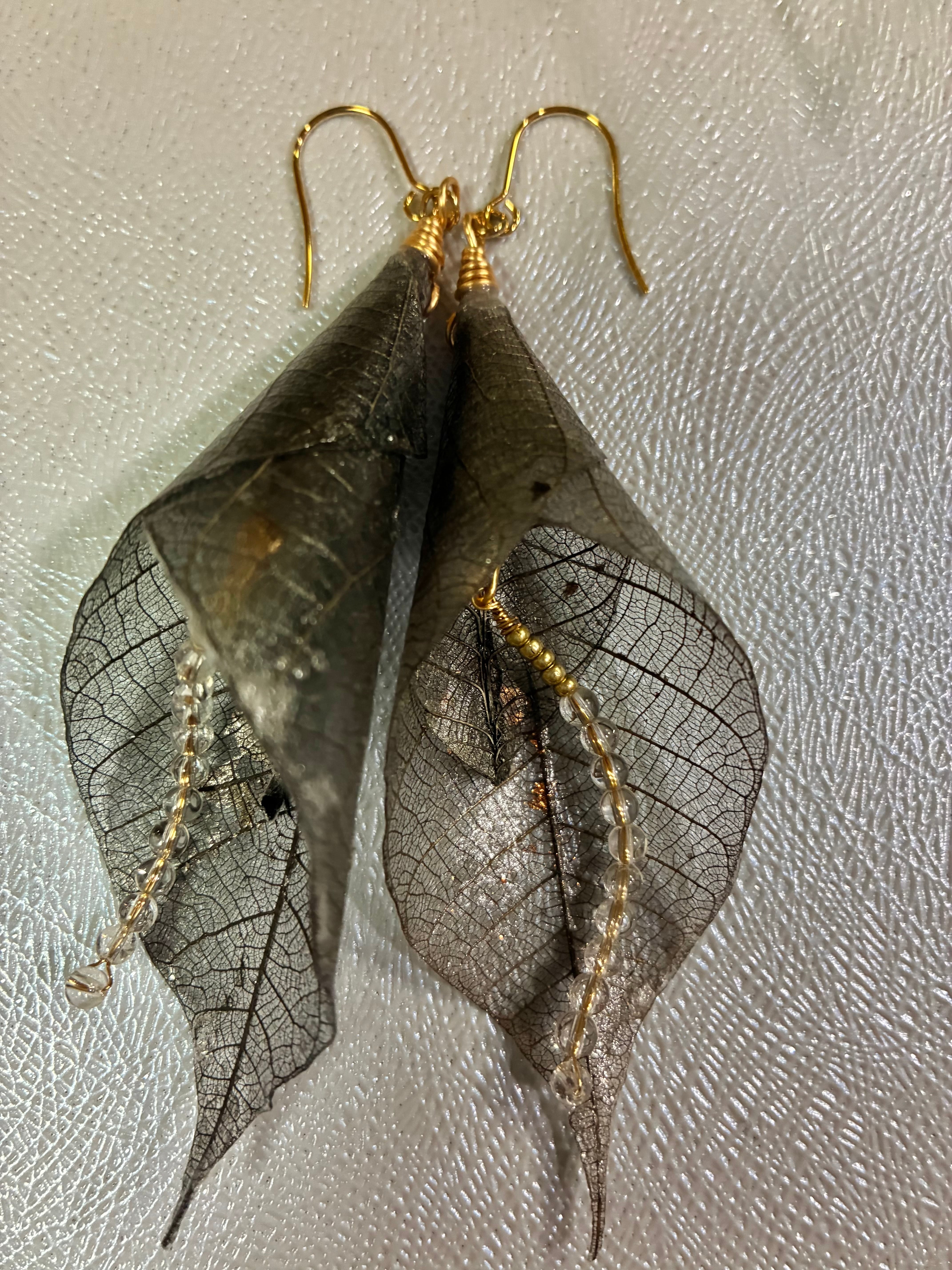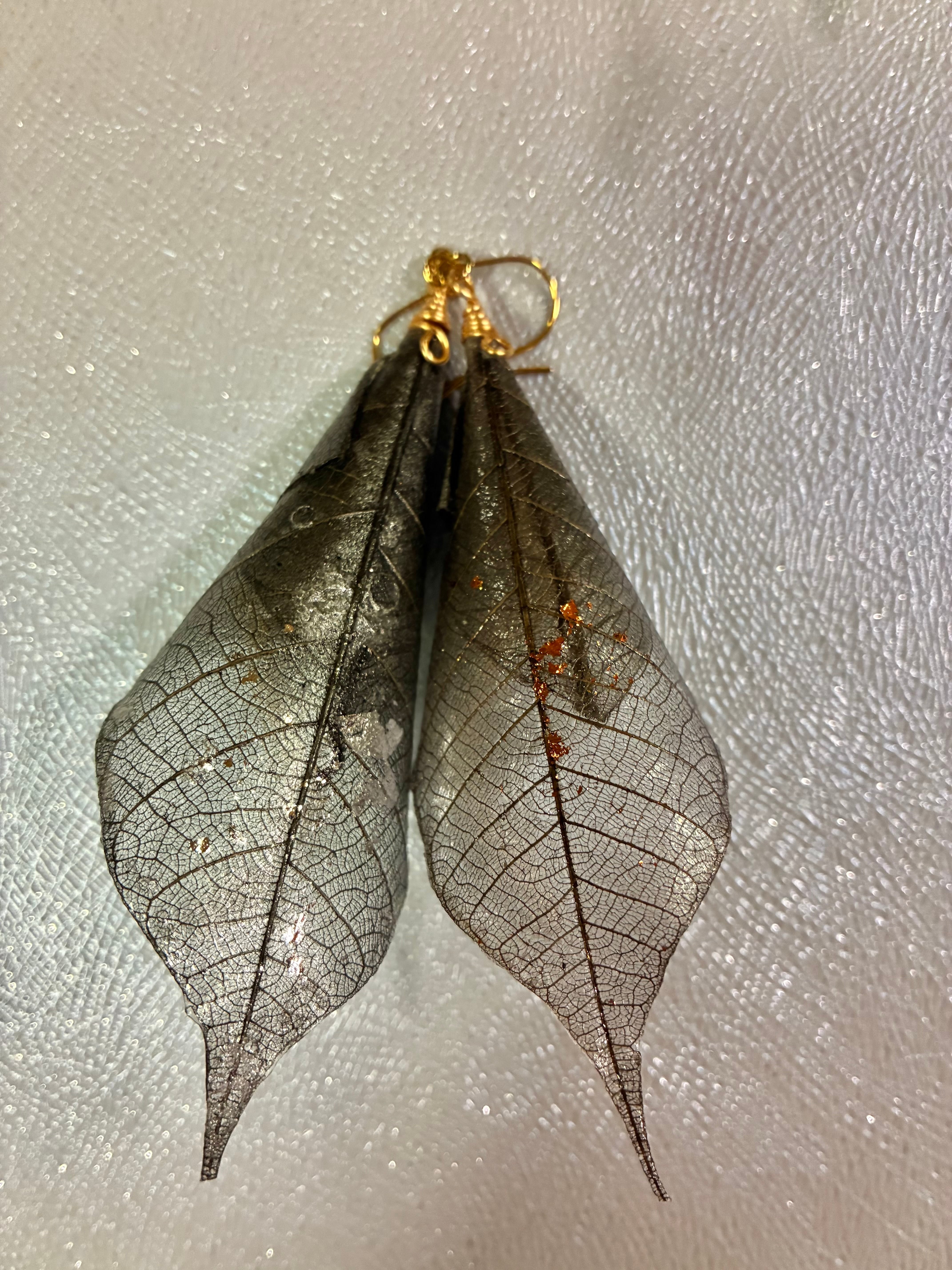本物のゴムの葉を贅沢に使ったユニークなピアスです。