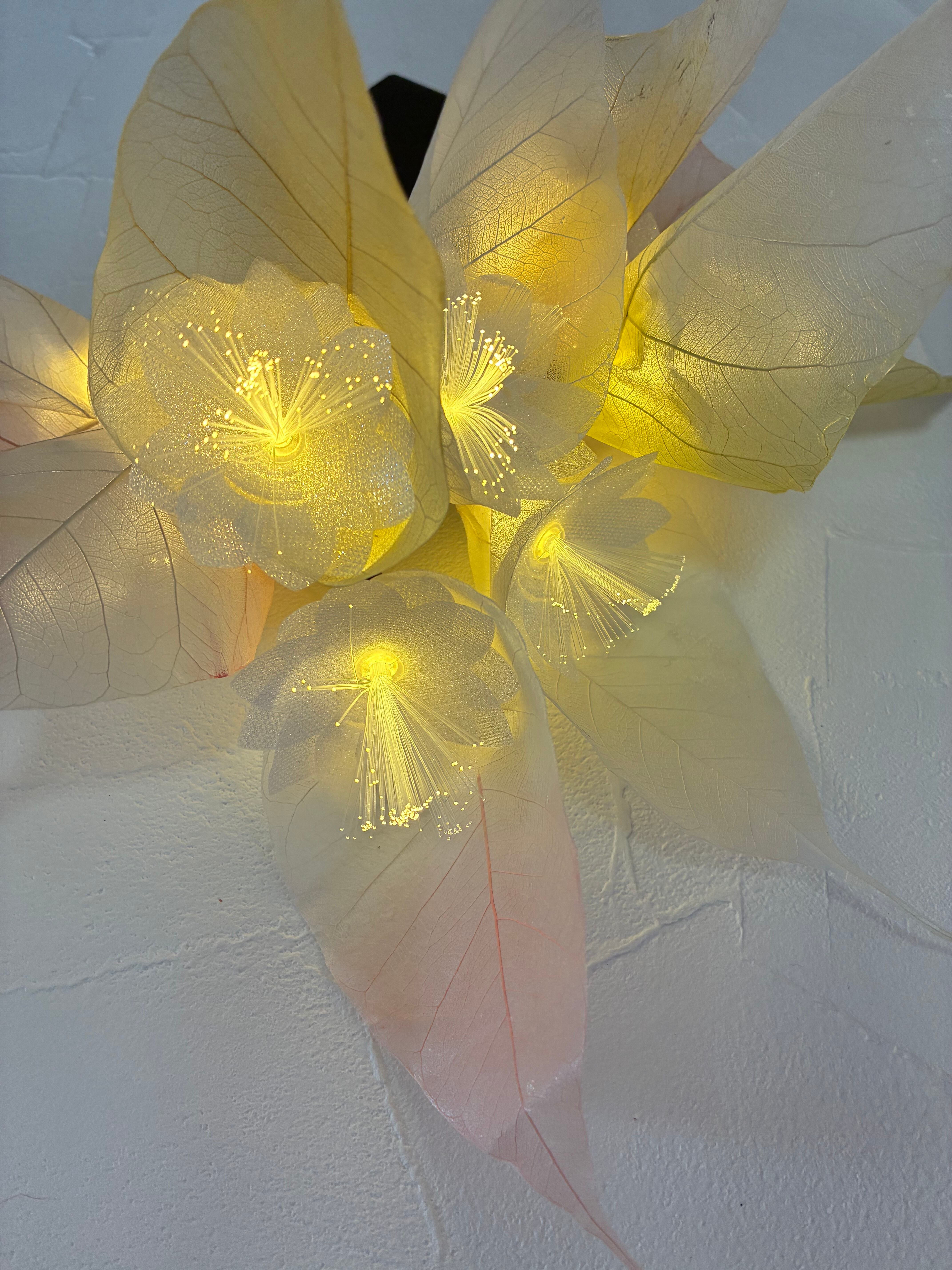 自然の植物の葉の特性を活かしたこのライトは、一つ一つ大きさや形が違い微妙に異なる表情を持ち、全く同じものは存在しません。