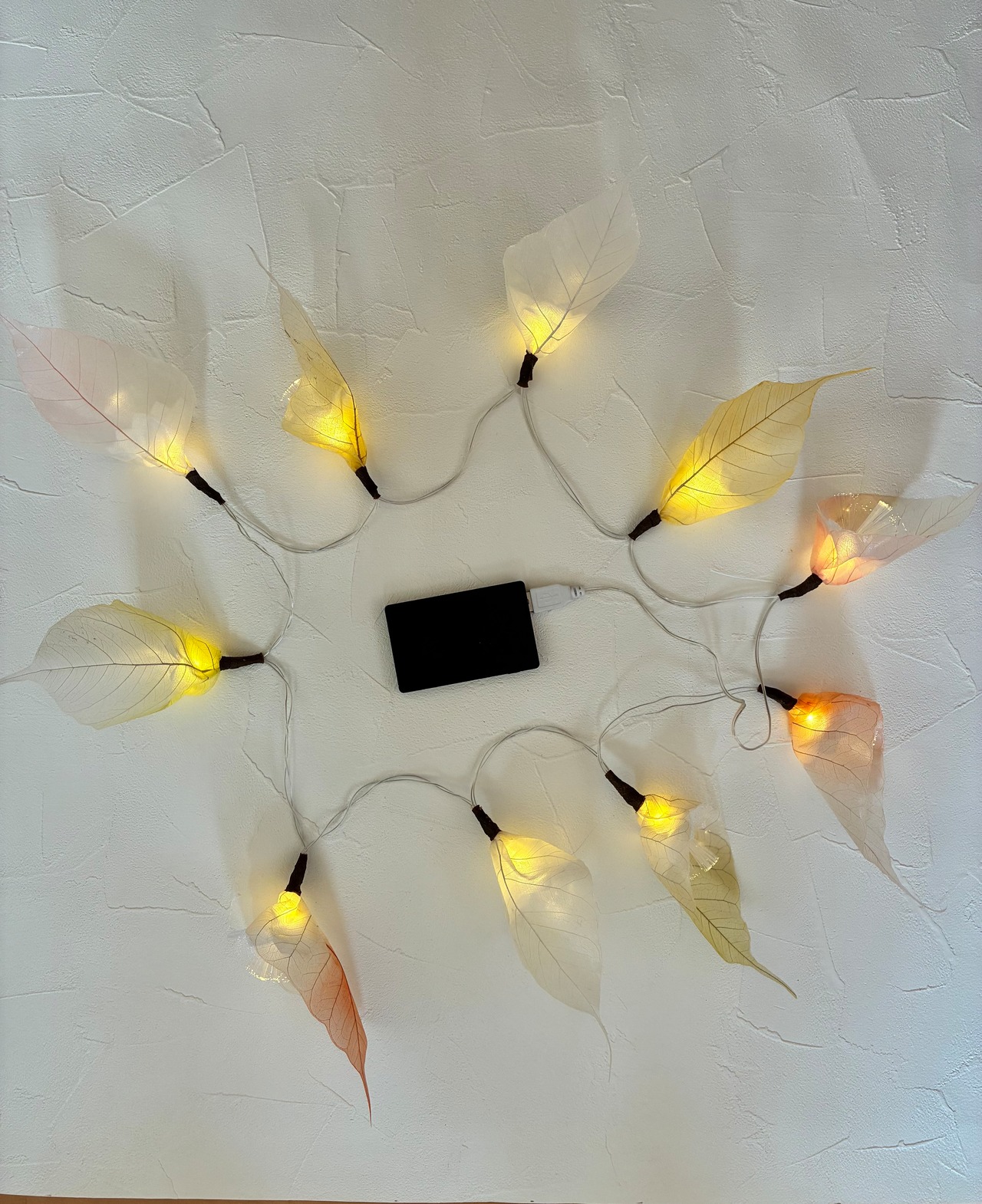 本物の植物の葉、インド菩提樹の葉っぱで作ったイルミネーションライト