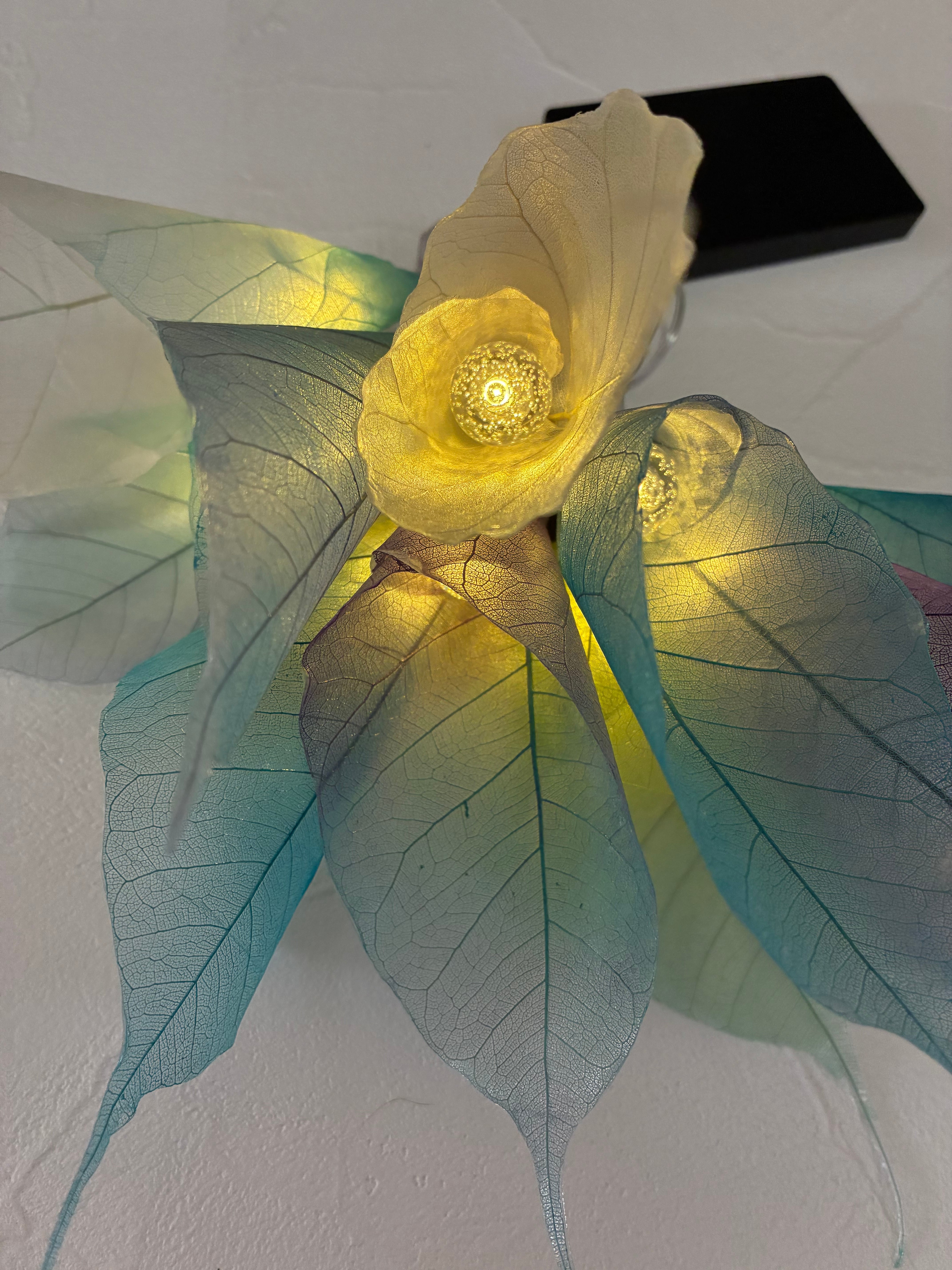 本物の植物の葉、インド菩提樹の葉っぱで作ったイルミネーションライト