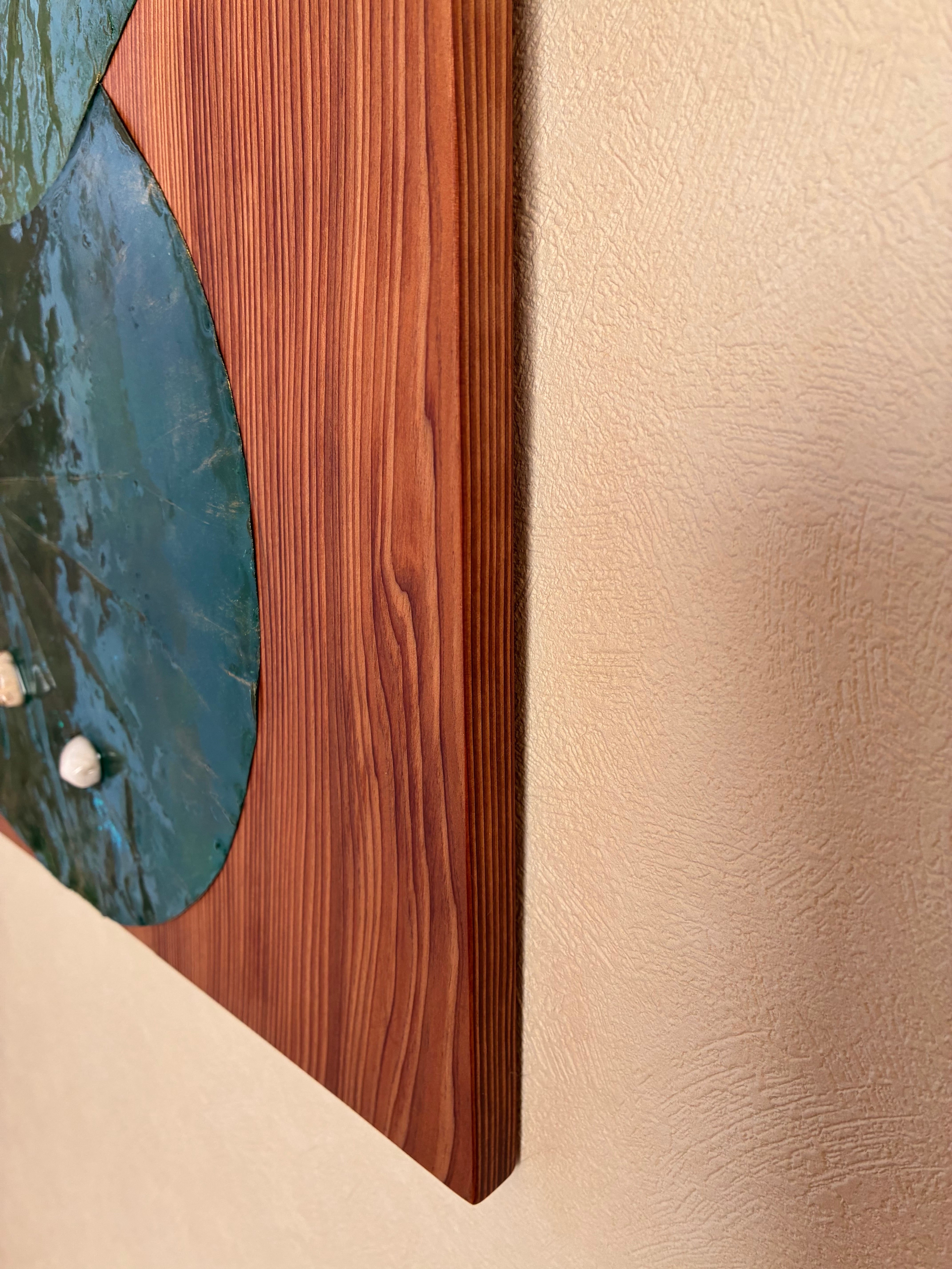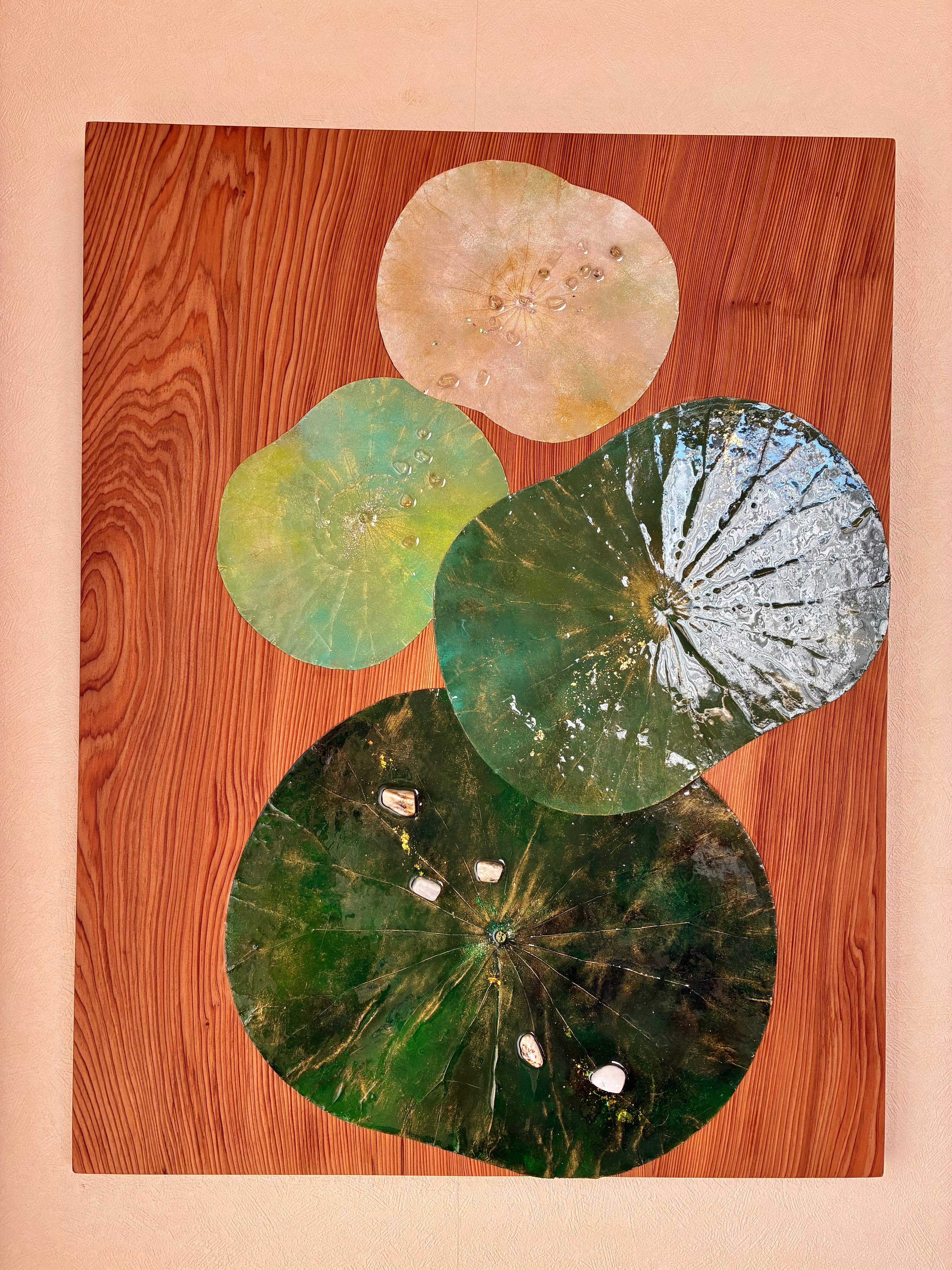 ボタニーペインティング 【はじまりの循環】蓮の葉の屋久杉パネル グリーン系