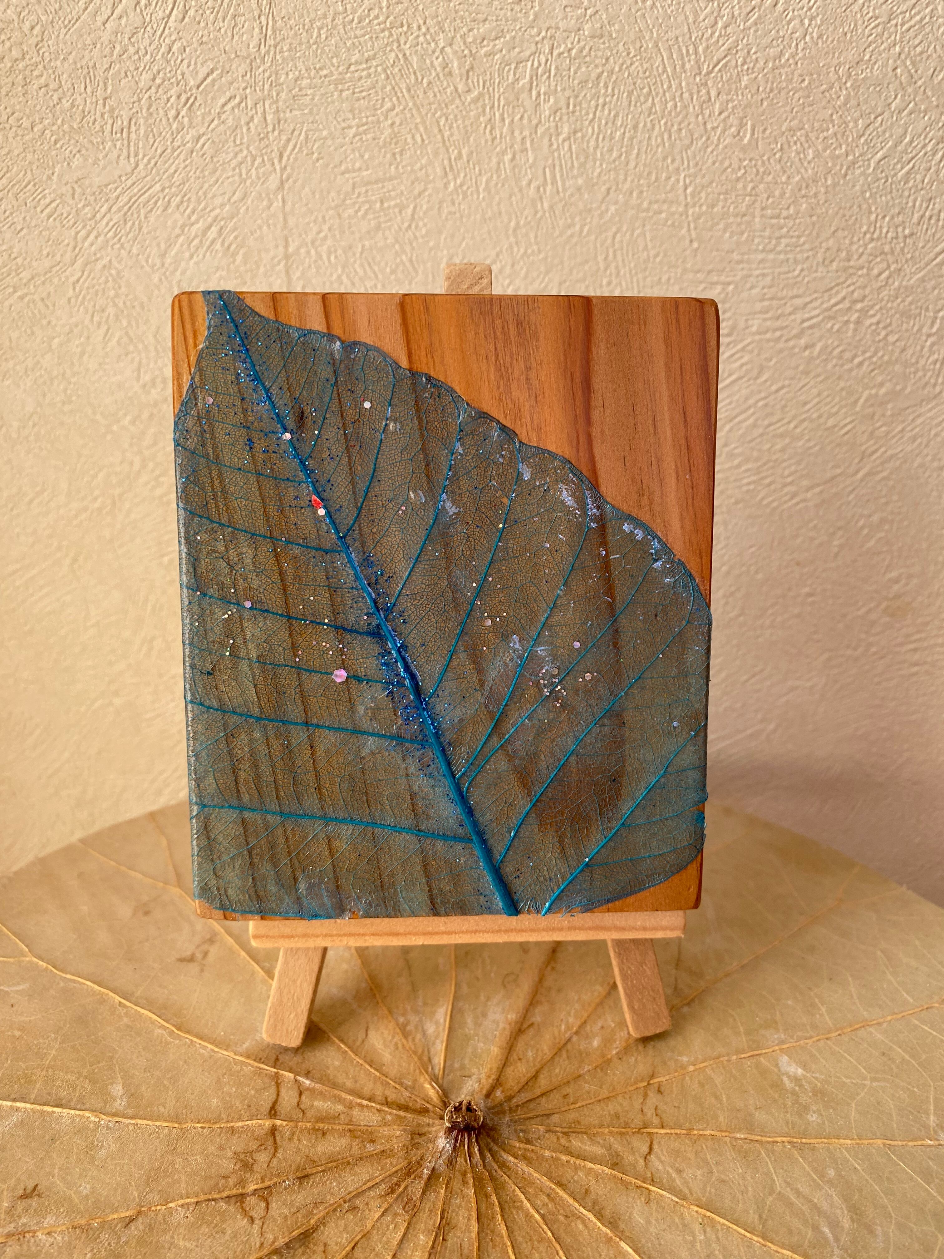 屋久杉の素材感が残るように、インド菩提樹の葉を1枚のみのせています。